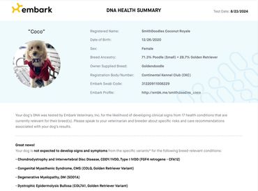 All of our puppies are raised in our home with love and care. They are exposed to different sounds and experiences to help them develop into confident and well-socialized puppies. We provide all necessary vaccinations and deworming before sending them to their new homes.
